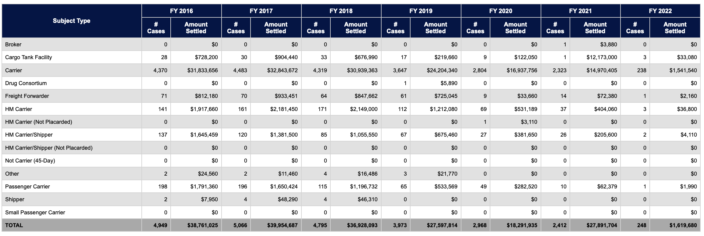 The consequences of non-compliance with federal and state safety regulations can be severe. For one, non-compliance leads to violations and violations lead to regulatory enforcement. In 2021, the average fine assessed against motor carriers for regulatory violations was just over $6,000. And aside from fines, the regulations authorize the DOT to downgrade safety ratings and impose company-wide shutdowns as a result of systemic safety violations. As we discussed in a prior article, DOT offsite audits and enforcement activity are on the rise.