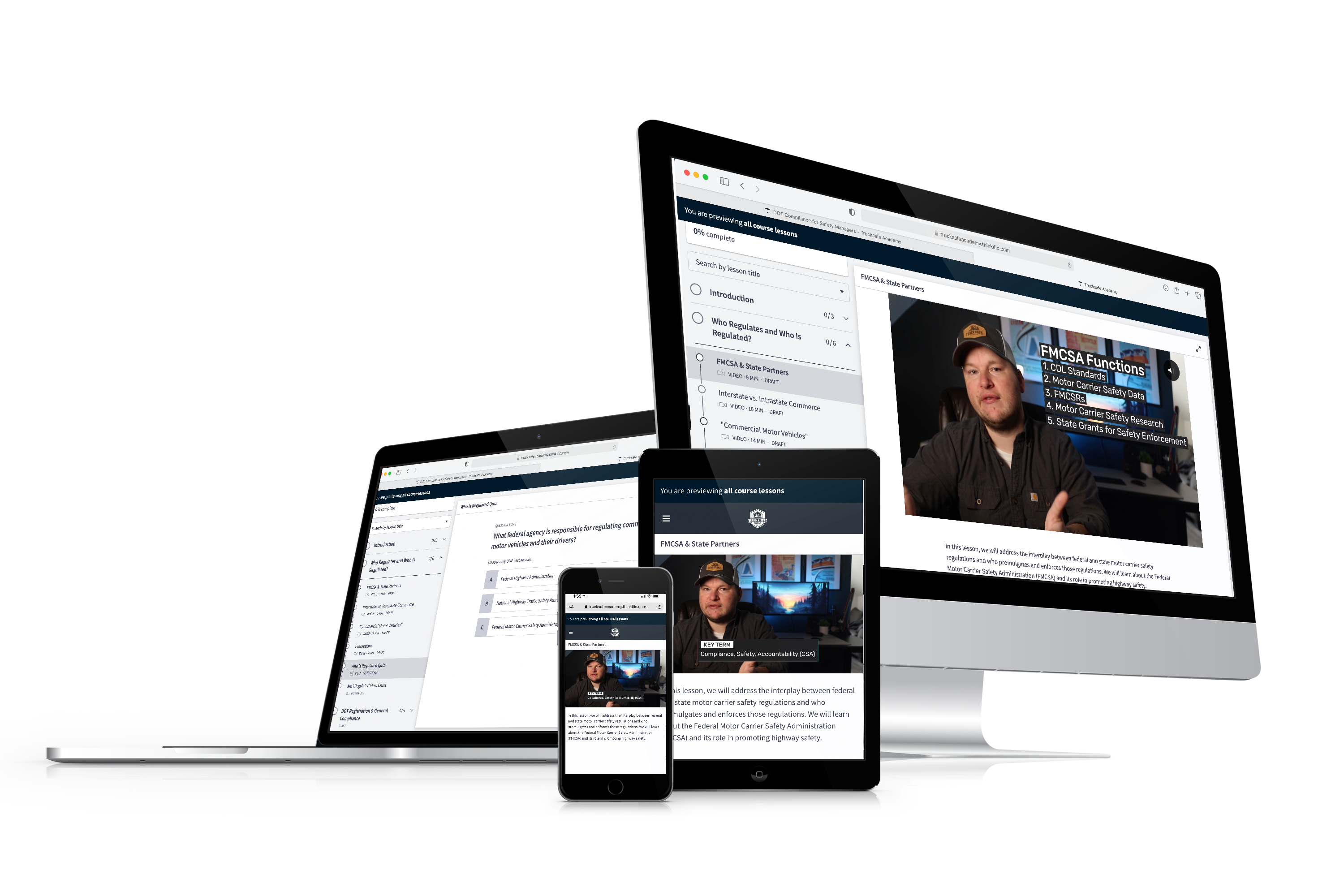 Our courses are primarily video-based, but also include helpful handouts, graphics, and quizzes to help ensure managers and drivers better understand and internalize the content. We also offer completion certificates for carriers to include in personnel files.